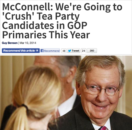 Mitch McConnell has vowed to ‘crush’ conservatives everywhere so he can fill the Senate with pro-establishment Republicans [And he has been successful more often than not by hook or by crook.].