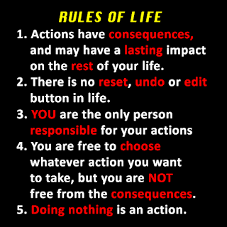 1) Actions have consequences and may have a lasting impact on the rest of your life.